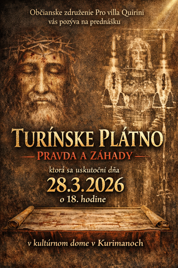 Dňa 28. marca 2026 sa v kultúrnom dome v Kurimanoch uskutočnila prednáška s názvom „Turínske plátno – pravda a záhady“, ktorú zorganizovalo občianske združenie Pro villa Quirini.
